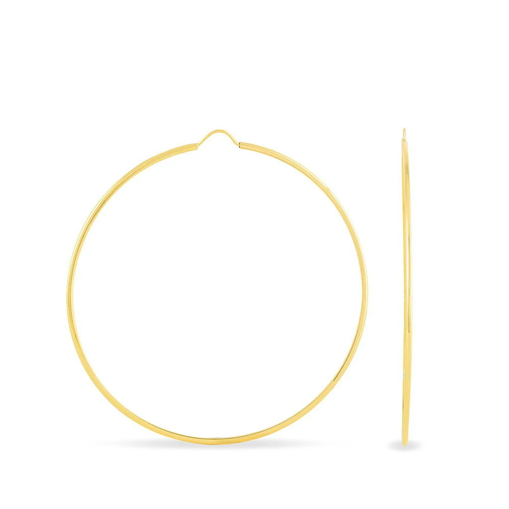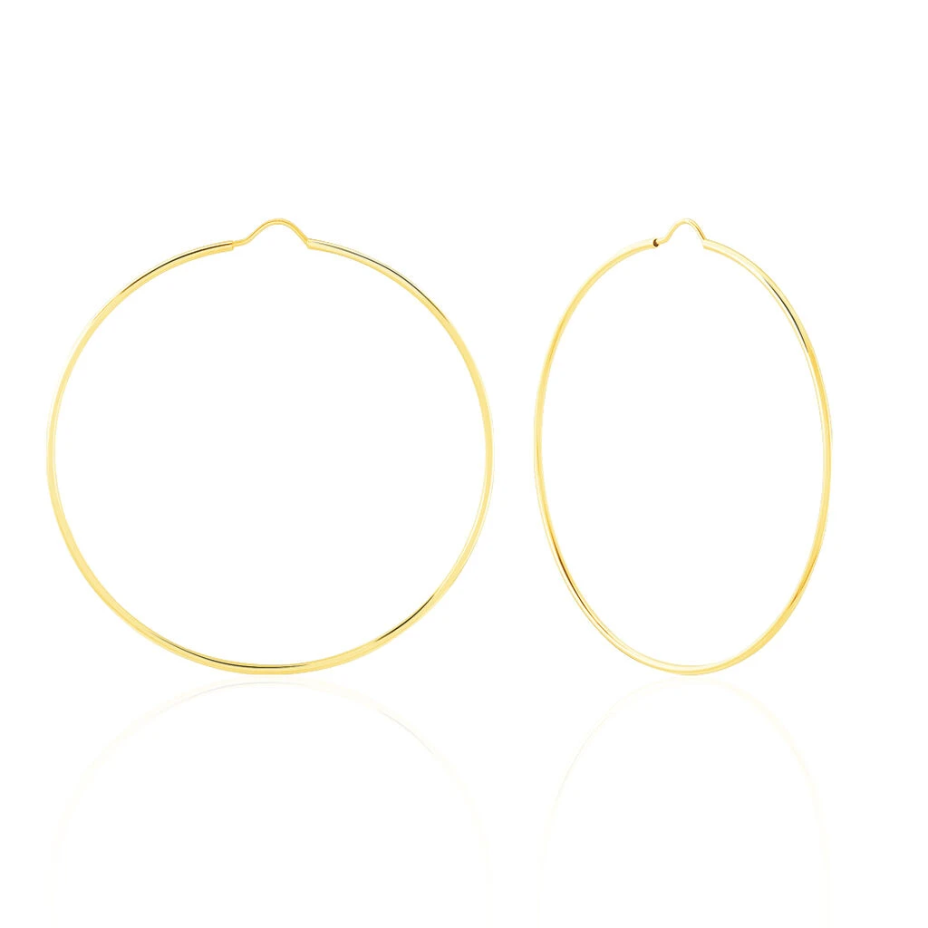 Ces créoles en or jaune sont des classiques que toute femme doit avoir dans sa boîte à bijoux. Elles se démarquent par leurs anneaux flexibles à la finition lisse. Leur dimension généreuse mettra votre visage en valeur en toutes circonstances. La version en or blanc vous séduira également.