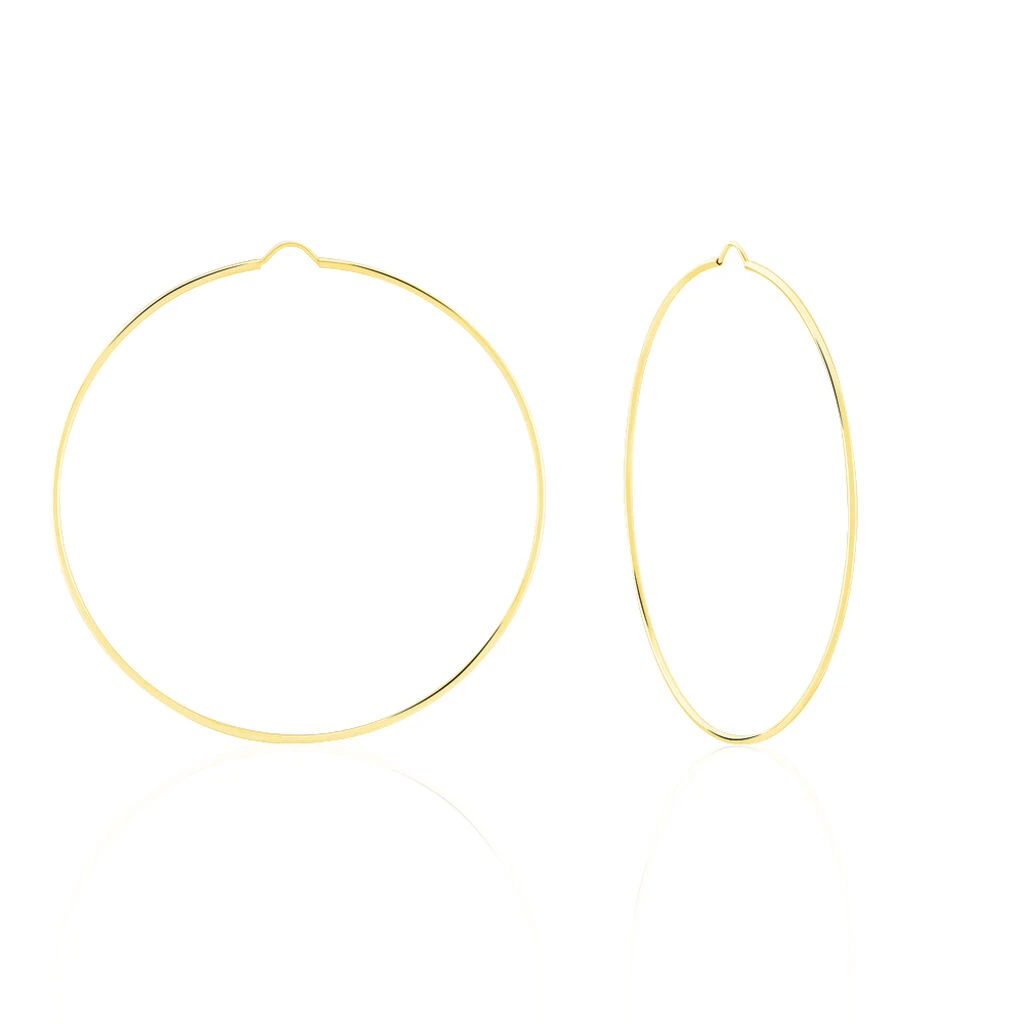 Ces ravissantes créoles en or jaune 375/1000ème iront parfaitement avec les plus belles tenues de votre garde-robe. À la fois élégantes et glamour, elles se portent en toutes occasions et avec tous les styles. Caractérisée par un fil rond lisse, et mesurant 65 mm de diamètre, cette paire va subtilement illuminer votre visage. Elle existe aussi en or blanc.
