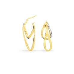 Créoles Or Jaune 375/1000 Deux Fils Carrés Dont Un Fil Avec Strass Largeur 2mm Diamètre 30x9mm