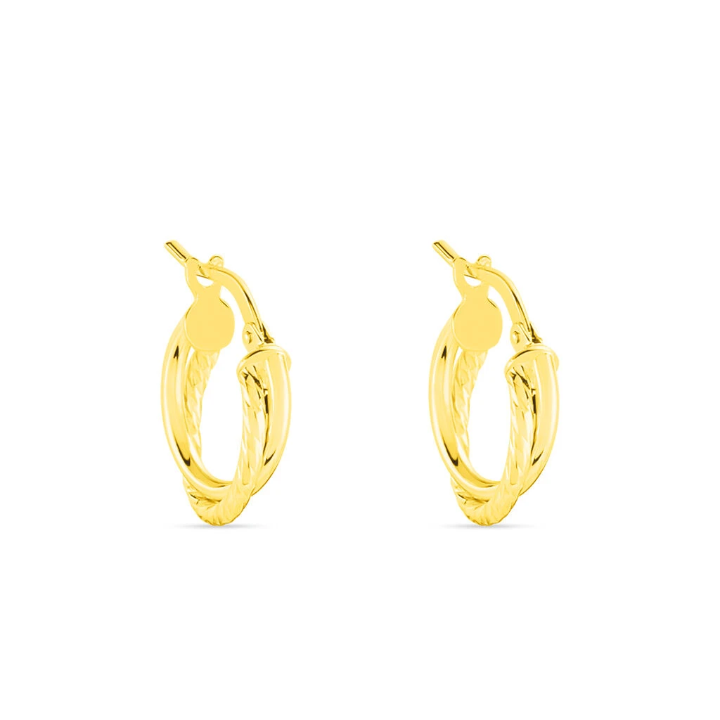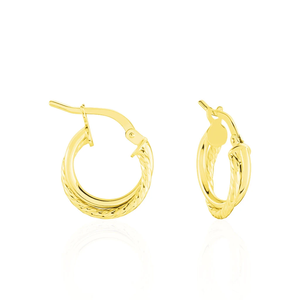 Créoles Or Jaune 375/1000 Croisées Fils Ronds Lisse Et Torsadé Largeur 1.5mm Diamètre 10mm