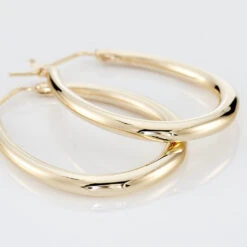 Creoles Plaqué Or Jaune Forme Ovale Diametre 34*25mm