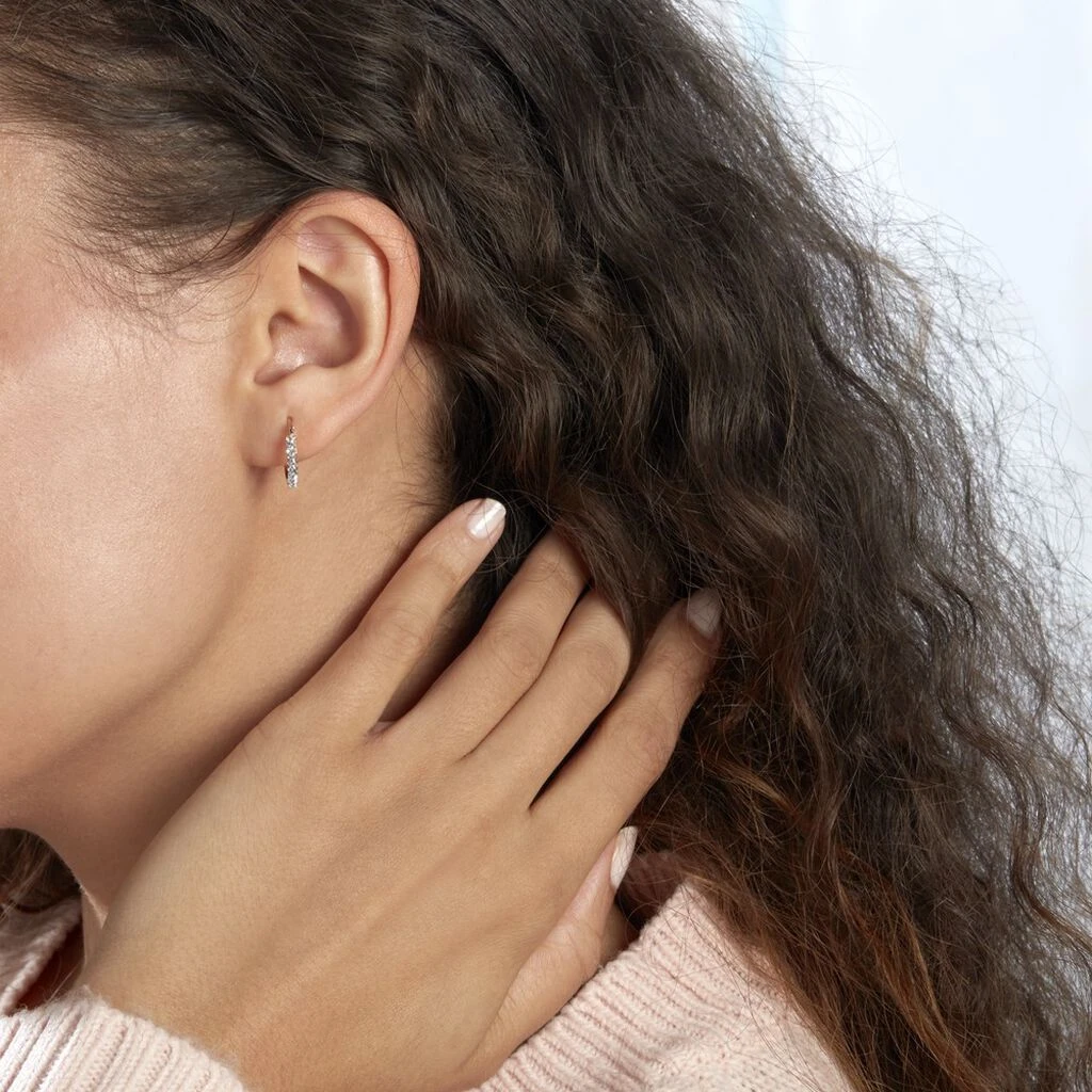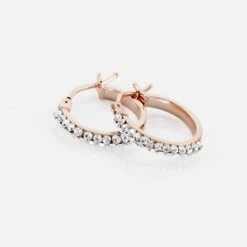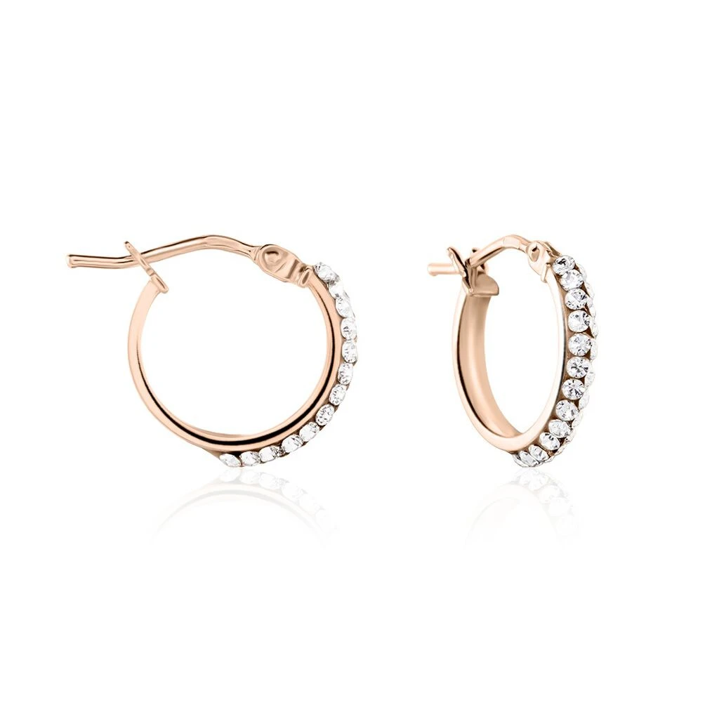 Créoles Or Rose 375/1000 Fil Carré Strass Largeur 2mm Diamètre 13.7mm