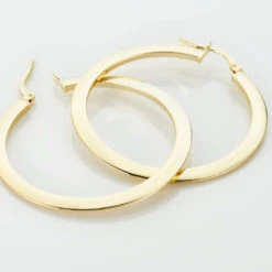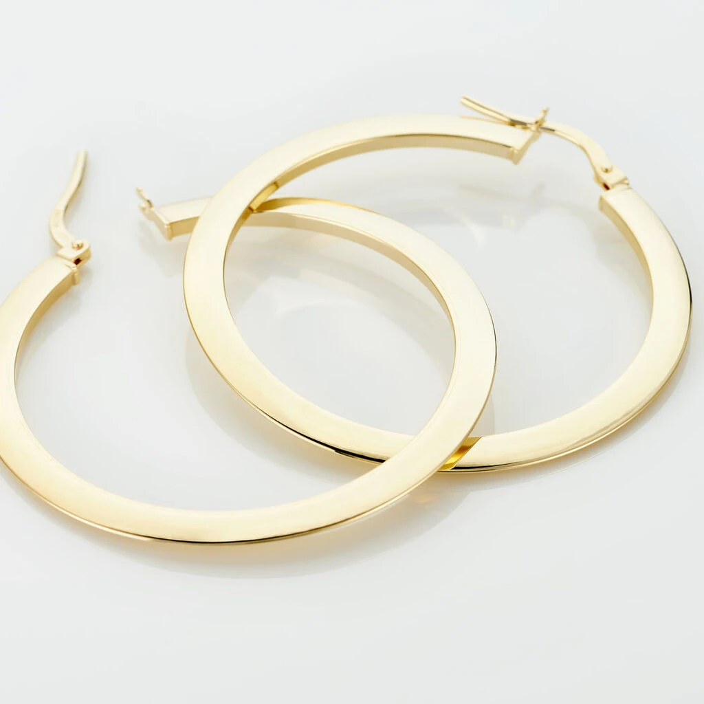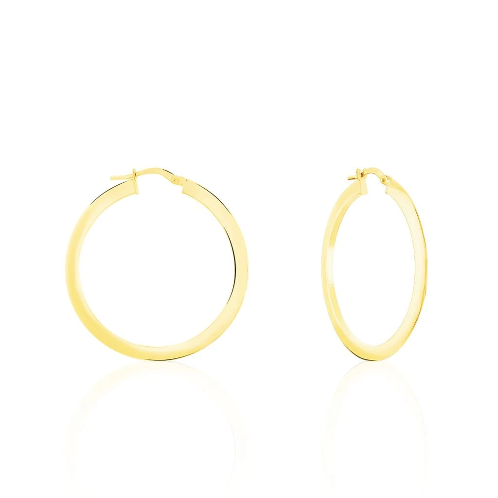 Créoles Or Jaune 375/1000 Fil Triangle Lisse Largeur 0.5mm Diamètre 30mm