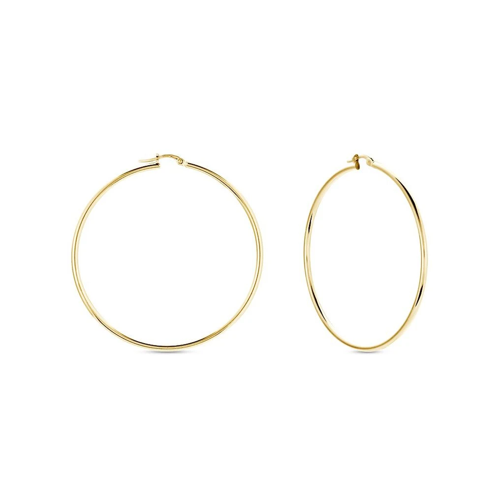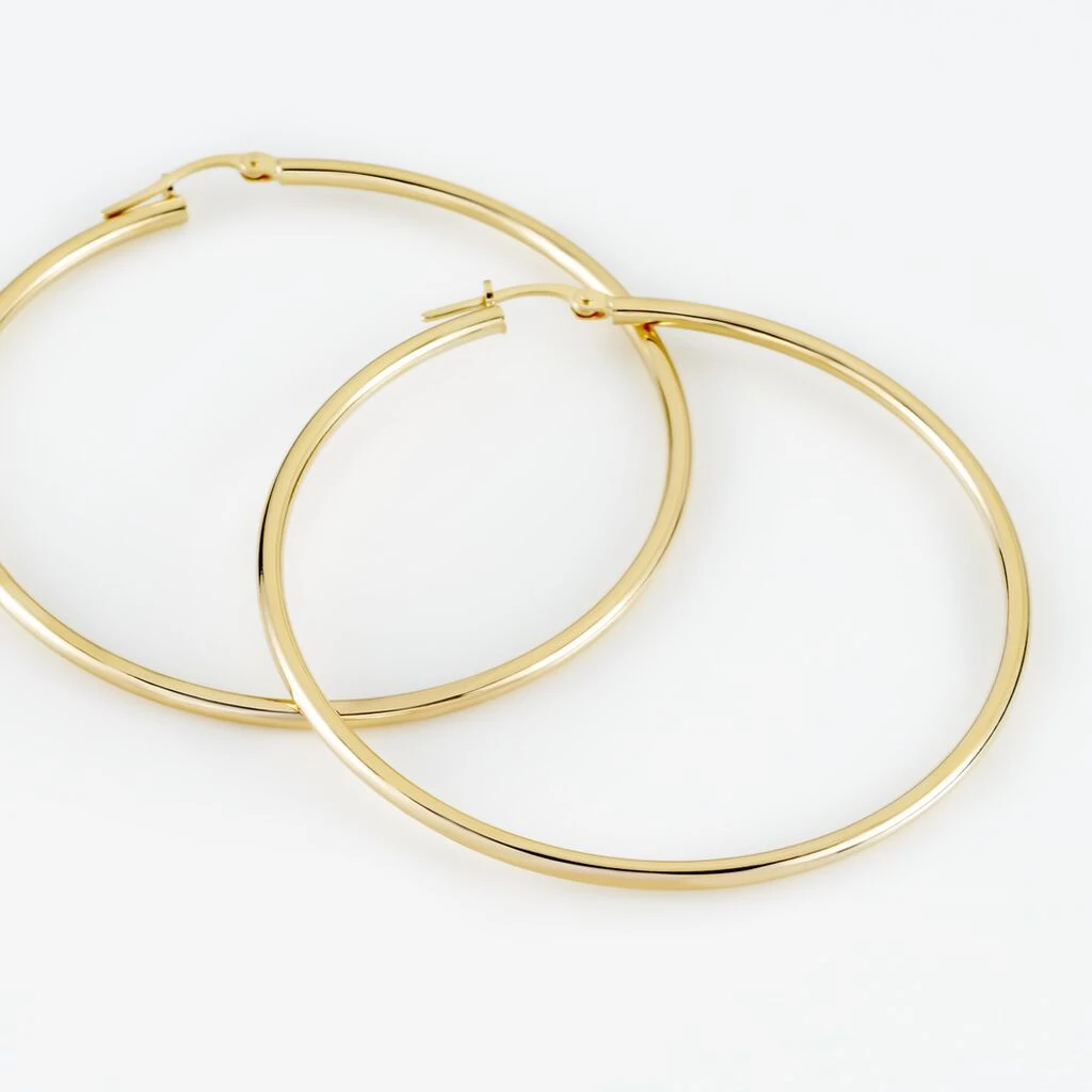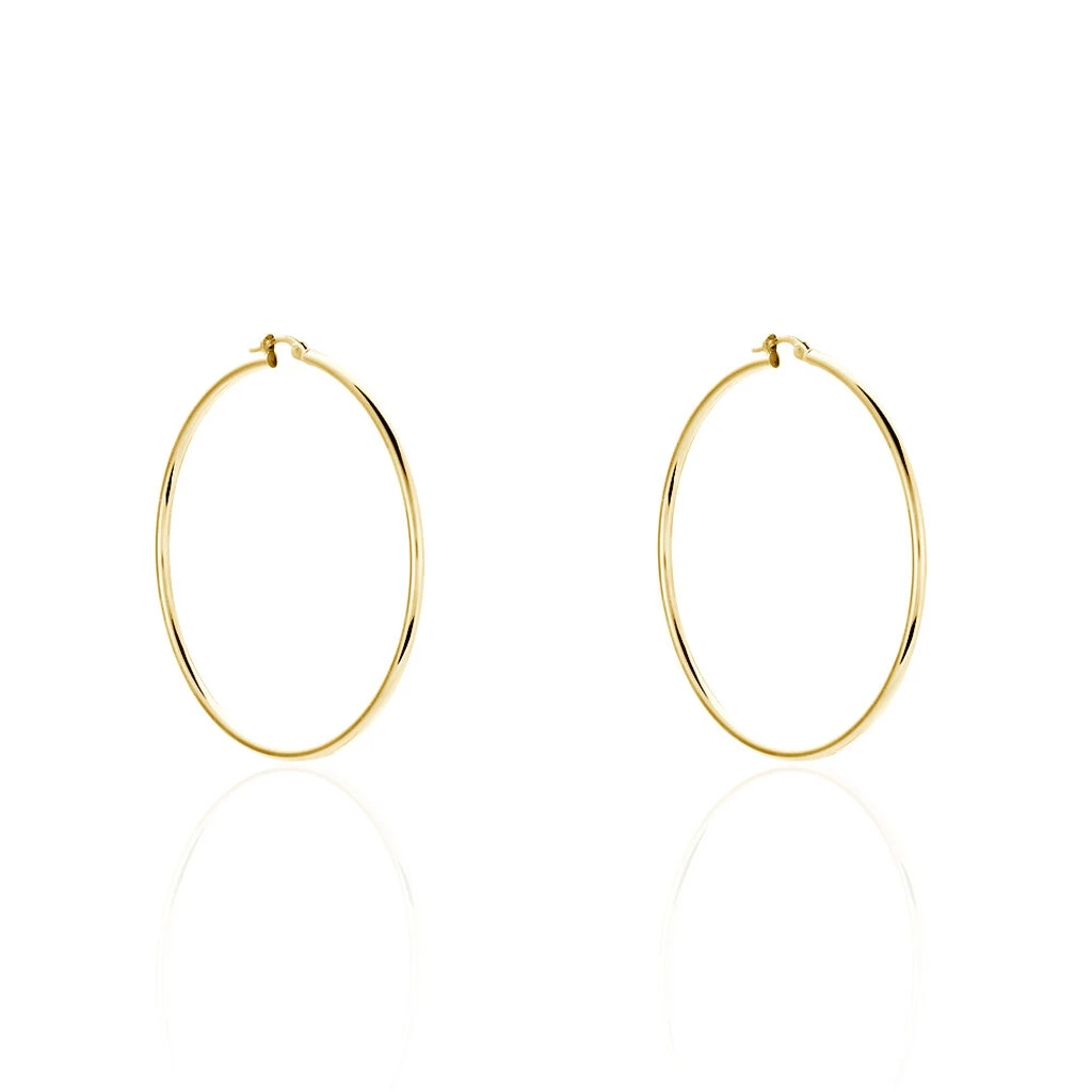Créoles Or Jaune 750/1000 Fil Rond Lisse Largeur 2mm Diamètre 50mm