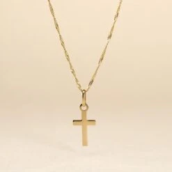 Pendentif Or Jaune 375/1000 Croix Religieuse Lisse
