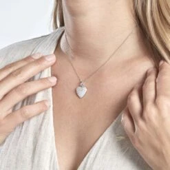 Pendentif Argent Blanc 925/1000 Cœur Pavage Oxydes De Zirconium