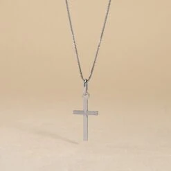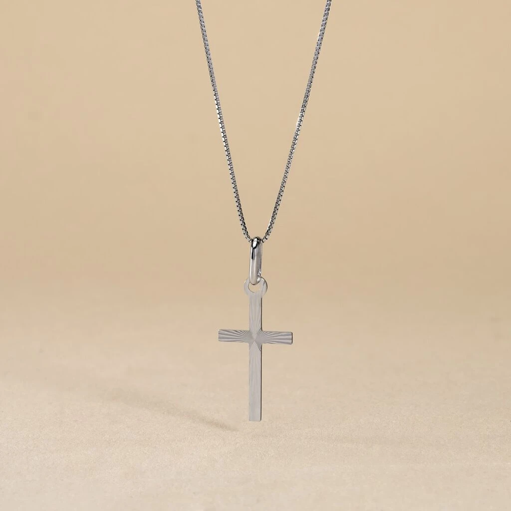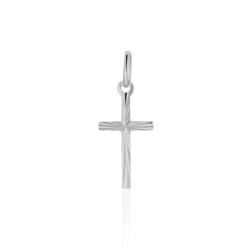 Pendentif Or Blanc 375/1000 Croix Religieuse Striée