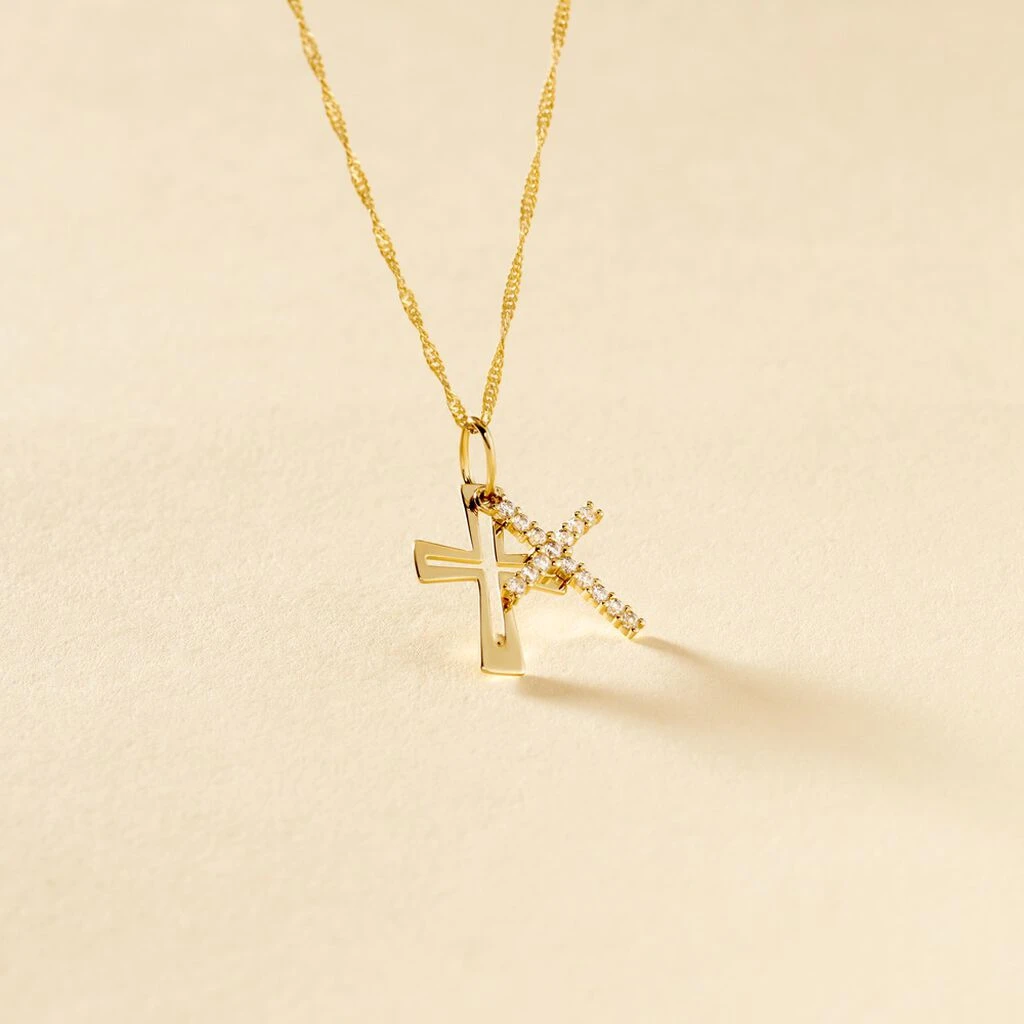 Pendentif Or Jaune 375/1000 croix Ajouree Et Croix Pavage Oxydes De Zirconium