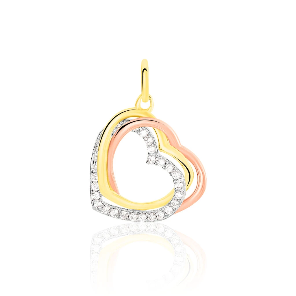 Pendentif Or Bicolore 375/1000 Triple Cœurs Ajourés Entrelacés Oxydes De Zirconium