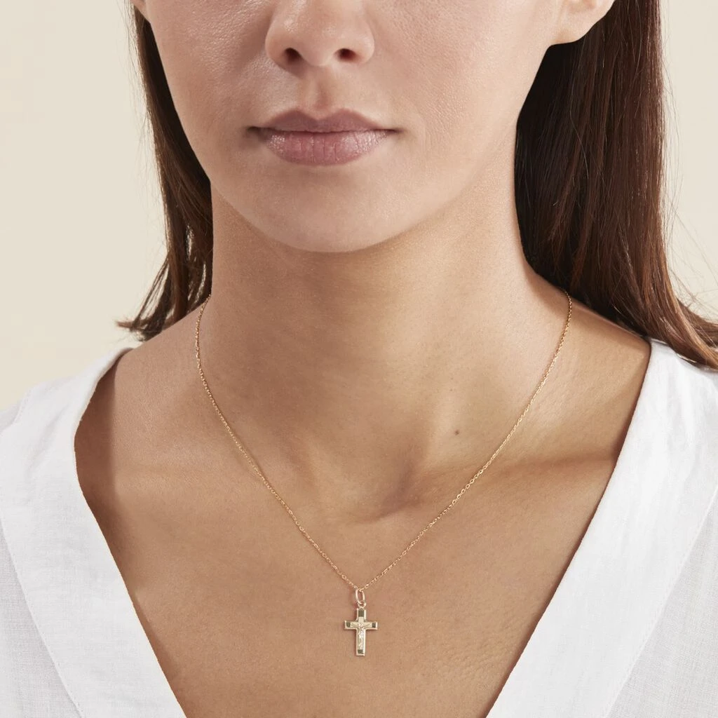 Pendentif Or Jaune 375/1000 Motif Croix Christ Finiton Lisse Et Mat