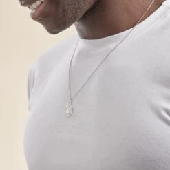 Medaille Or Blanc 375/1000 Ronde Motif Ange Penseur