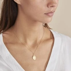 Pendentif Or Jaune 375/1000 Ovale Motif Vierge Mains Jointes