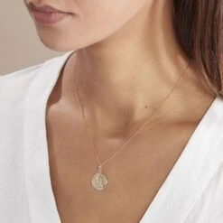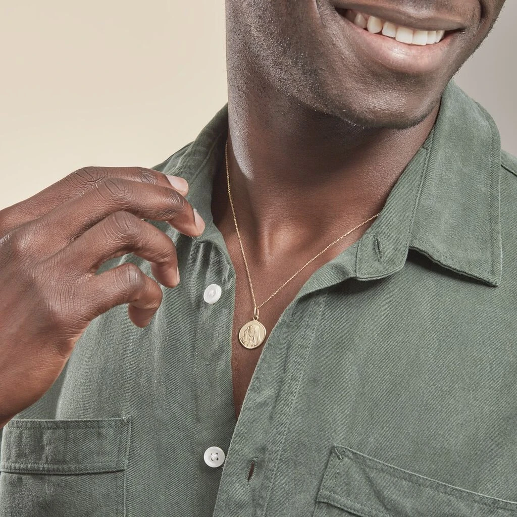 Pendentif Or Jaune 375/1000 Médaille Ronde Motif Vierge Mat