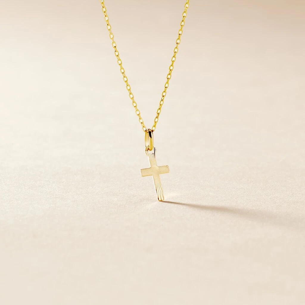 Pendentif Or Jaune 750/1000 Motif Croix Striée